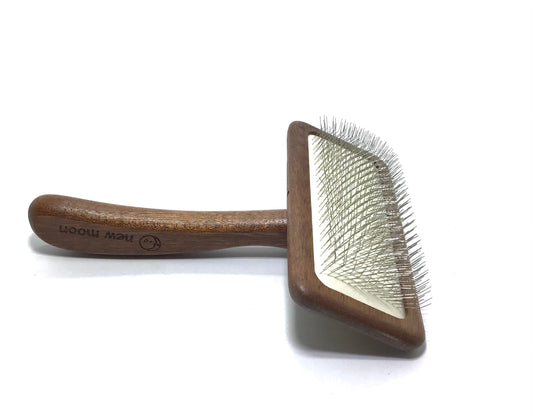New Moon Competition Grade Slicker Brush, "Sapele Natural Mars"