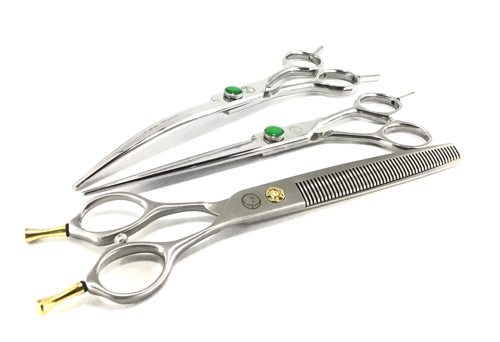 - Usage: Probably one of the most used New Moon scissors. Creating excellent finishes known to make pet owners cry in joy upon pick up. A real tip plus money maker here!!!
